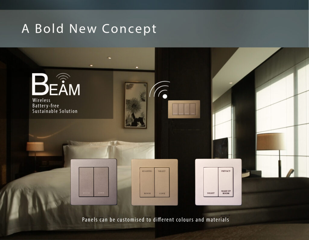 Unlike conventional systems, Bena Beam utilizes kinetic energy capture buttons in its panel, making it not only completely wire-free but also battery-free!
